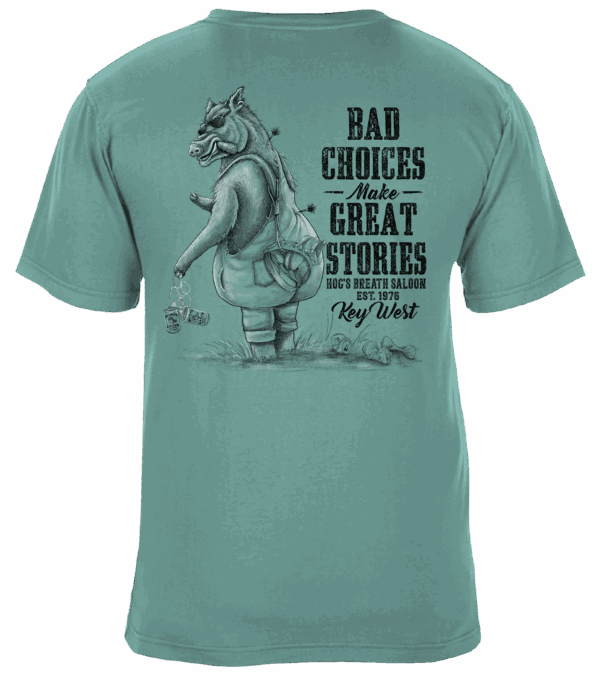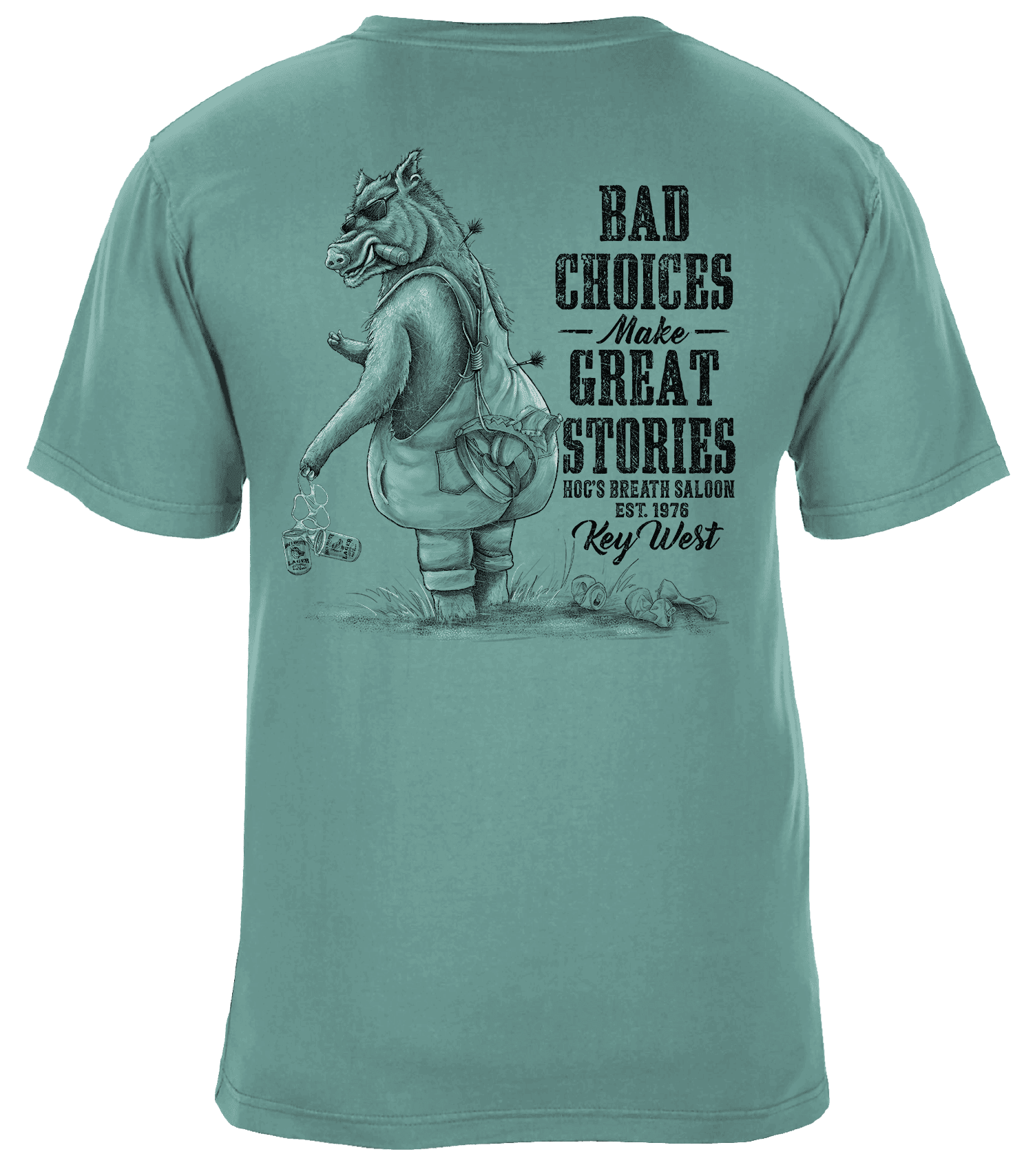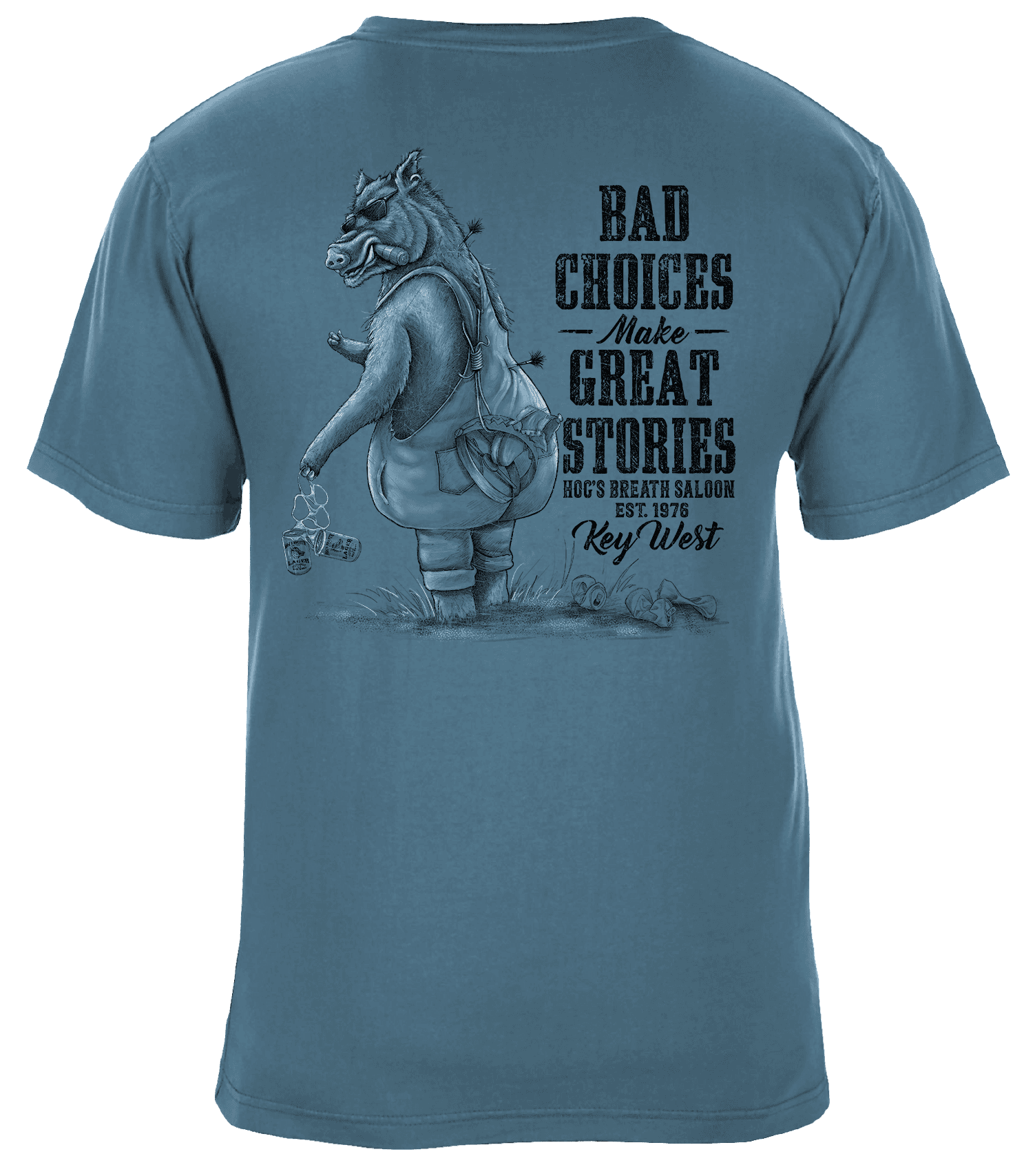 Because sometimes the worst decisions make the best memories. The Bad Choices Tee features a hilarious illustrated hog and bold “Bad Choices Make Great Stories” text on the back. Made for those who live loud and laugh later — Hog’s Breath style.