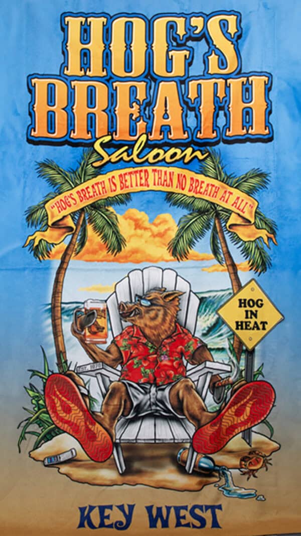 Beware of the Hog in Heat! They’re everywhere—even at the beach. Dry off in style with this bold, oversized towel featuring Hog’s Breath attitude.