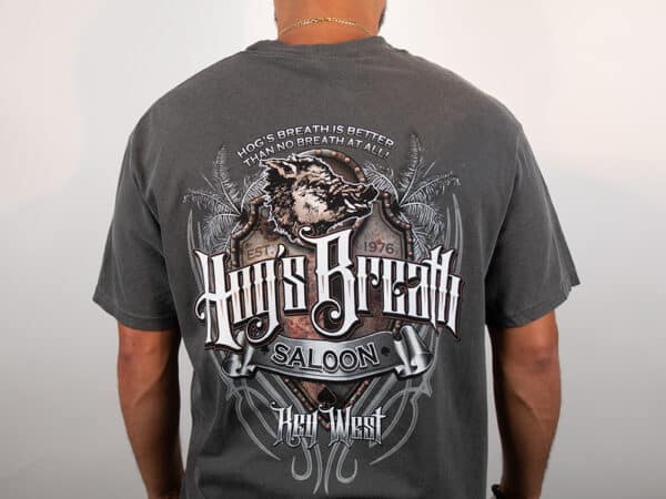 Channel your inner warrior with the Hog Tribal Muscle Tank. Featuring our iconic Hog’s Breath shield surrounded by tribal elements and palm fronds, this sleeveless design blends tradition and strength—just like you. Represent your roots and your edge since 1976.