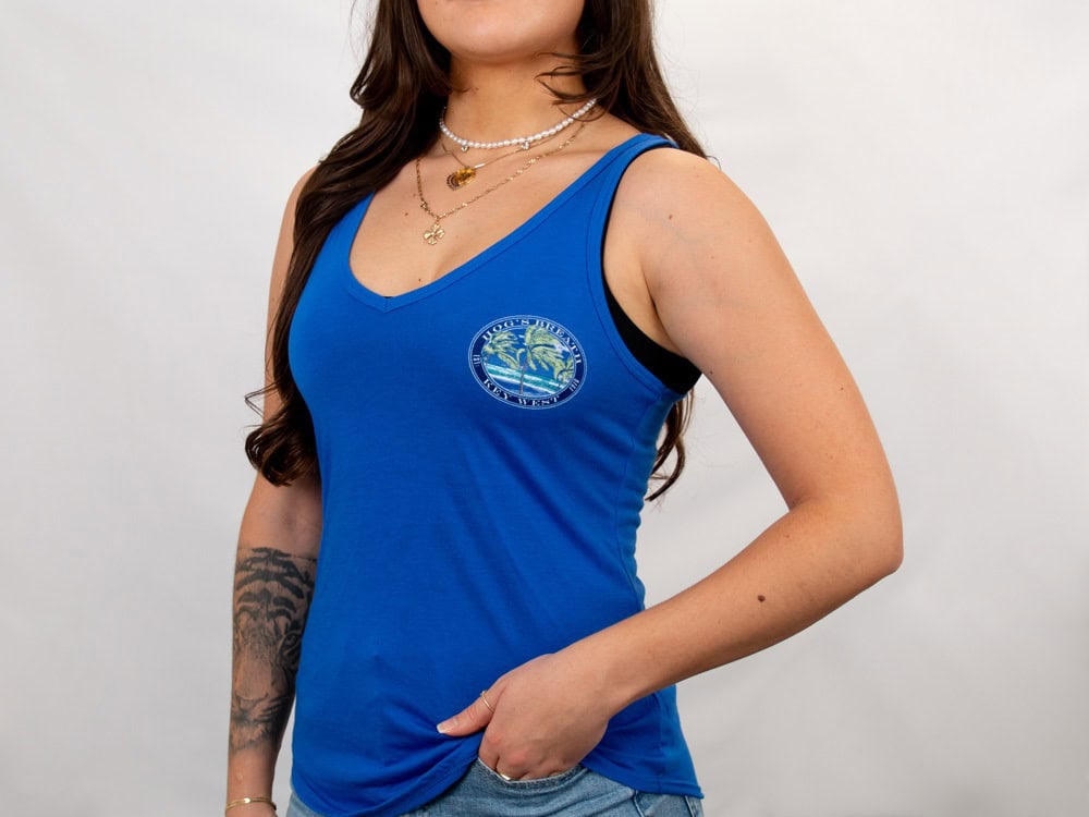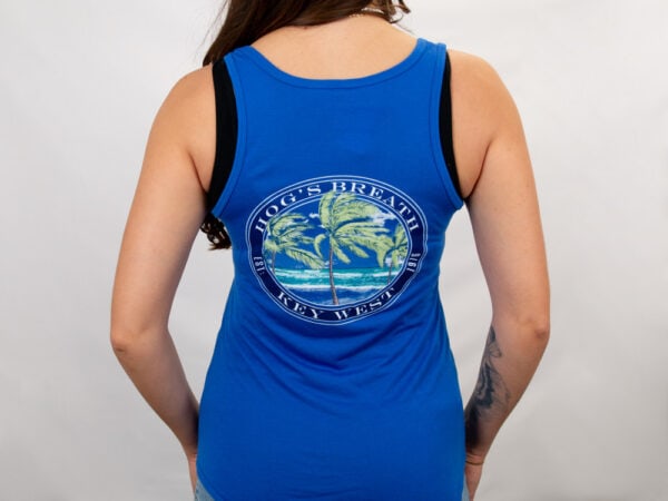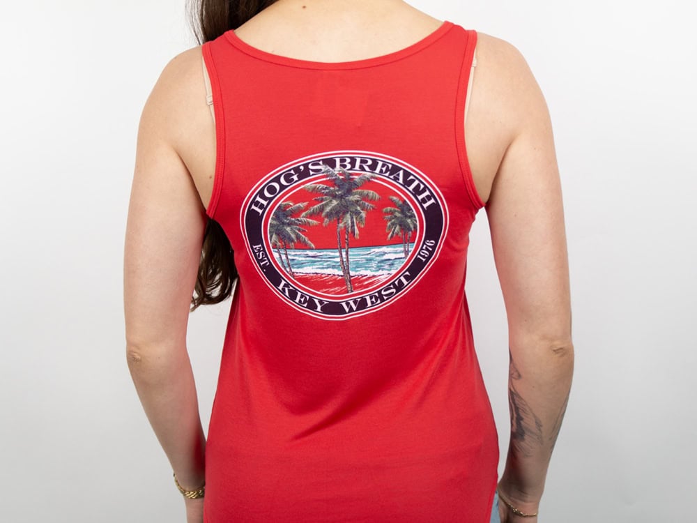 Breeze through sunny days in the Ladies Palm Tree Tank — soft, drapey, and effortlessly flattering. Featuring a relaxed fit and tropical Hog’s Breath vibe, it’s perfect for beach outings, casual looks, or as a stylish reminder of your Key West visit.