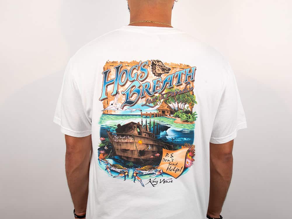 Get lost in paradise and don’t bother sending help—this tee says it all. Featuring classic Hog’s Breath artwork and island attitude, this Comfort Colors shirt is built for relaxed vibes and rugged durability.