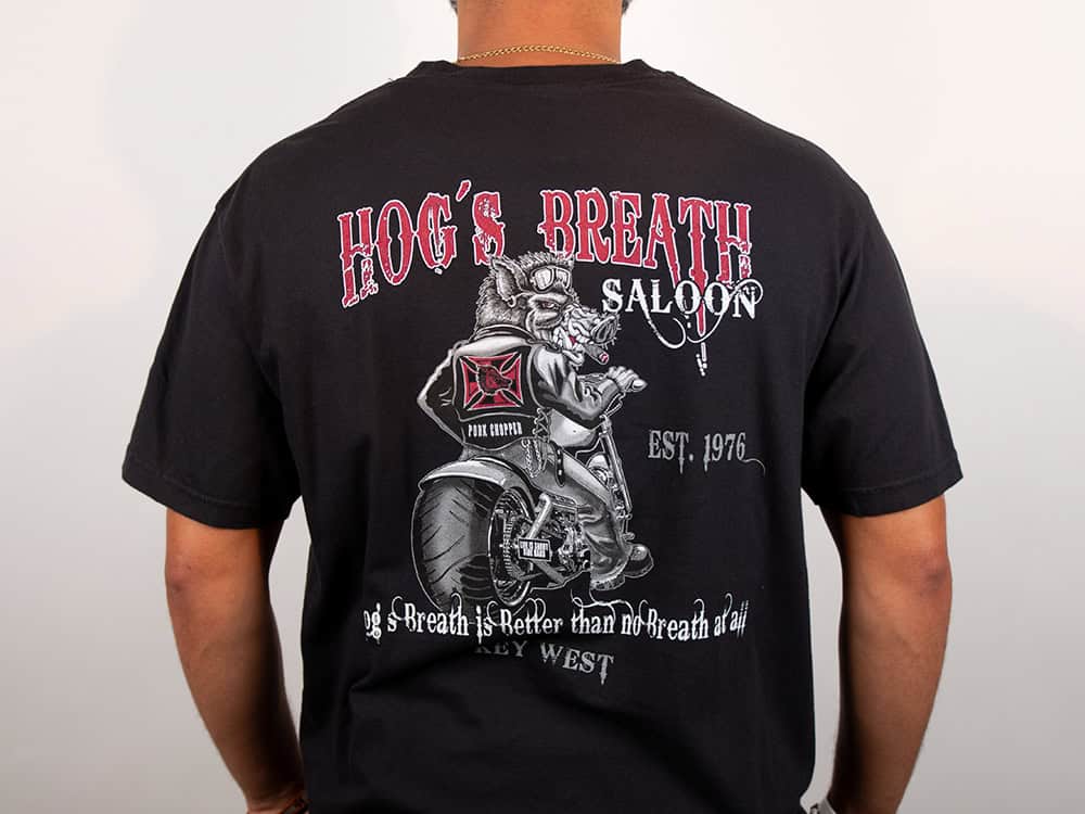 Ride in style with the Pork Chopper Tee — our most popular motorcycle design. Featuring a cigar-smoking hog on a chopper, this garment-dyed tee is built for comfort and attitude. Soft, pre-shrunk cotton with a relaxed fit makes it perfect for any road warrior or Hog’s Breath fan.